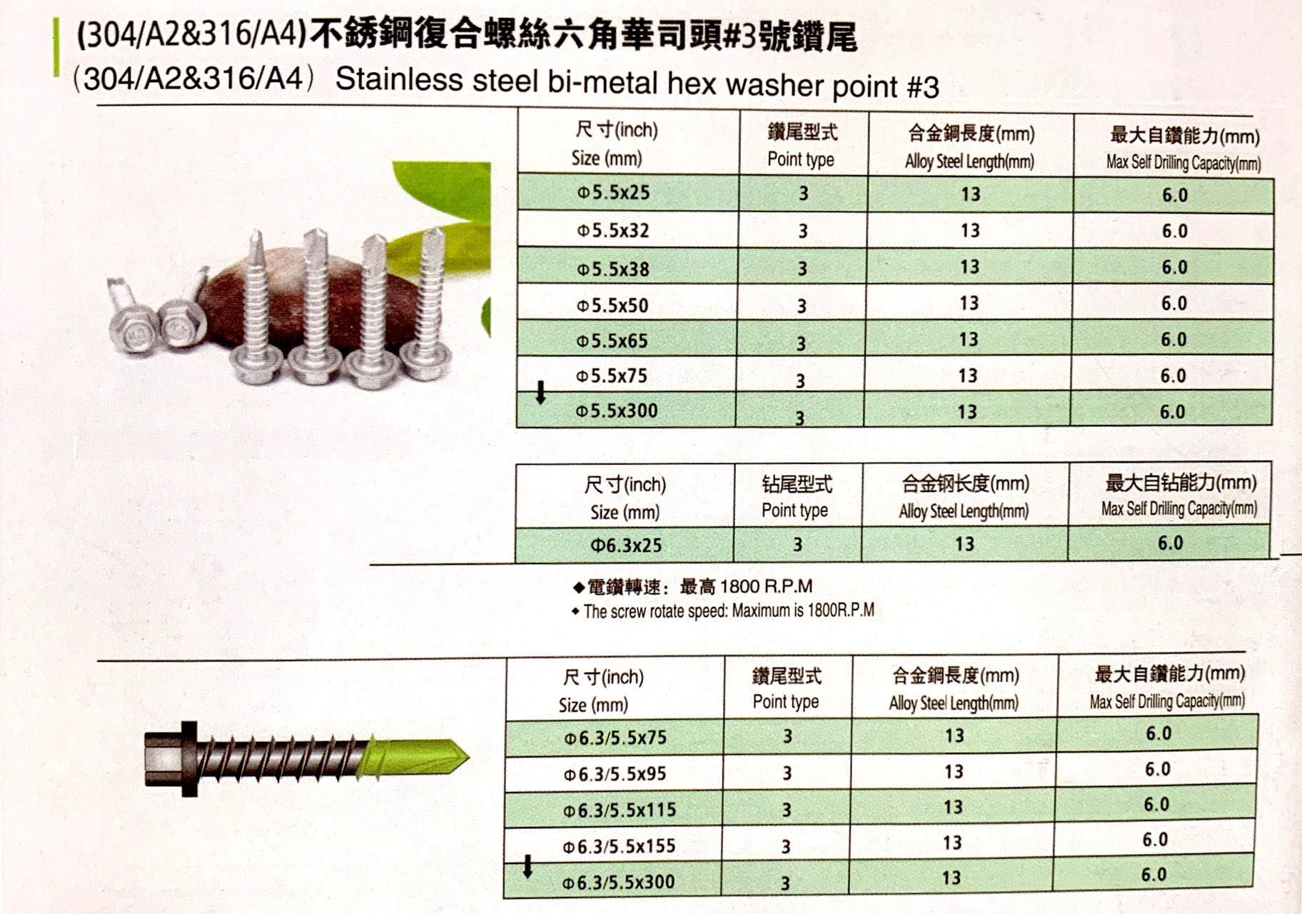 六角复合华司钻尾